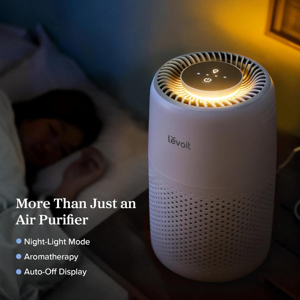 LEVOIT Core Mini Air Purifier – 3-in-1 Filter for Smoke, Allergies, Pet Dander & Odor, Ultra-Quiet 25dB, Night Light, Portable for Bedroom & Office”