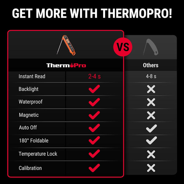 ThermoPro Instant Read Digital Meat Thermometer – Waterproof, Backlight, Calibration for BBQ, Smoker, Candy & Frying